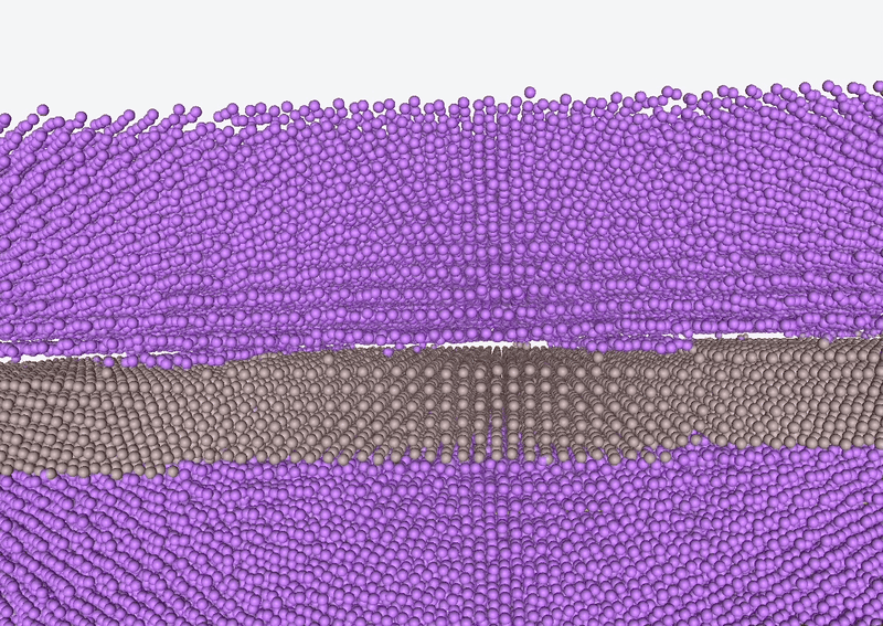 Alloy metal-metal interface. Snapshot of an all-atom molecular dynamics simulation within QuantistryLab